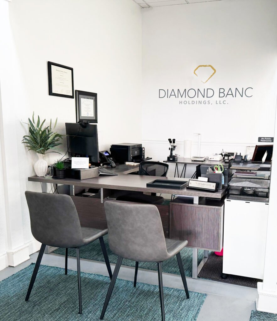 Diamond Banc’s Tampa office is strategically located in the Palma Ceia Plaza on Henderson Blvd in the trendy South Tampa area. Our office offers a secure, private, and comfortable space for you to sell your jewelry or obtain an asset-based loan. Our extensive range of services includes jewelry buying and providing loans secured by diamonds, diamond jewelry, and luxury Swiss watches, as well as designer jewelry and handbags, such as David Yurman, Tiffany, Cartier, Chanel, Louis Vuitton, Hermès, and others.