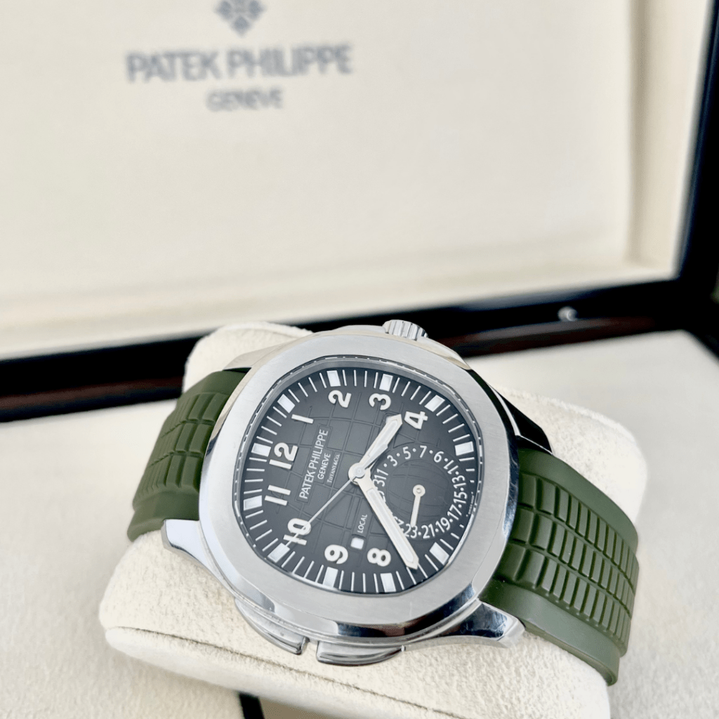 Aquanaut Collection: Celebrated for its rugged elegance and versatility, the Aquanaut is perfect for the adventurous. The 5164A Travel Time offers a dual time display in a robust yet stylish package, and the 5168G-010 in striking khaki green is a top choice for its functionality and style. We are actively seeking every Aquanaut type in both age, and metal type.