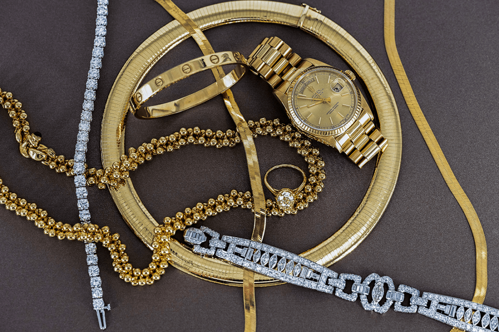 - Designer gold jewelry from designers such as Cartier, Tiffany & Co., Harry Winston, Van Cleef & Arpels, Graff, & others